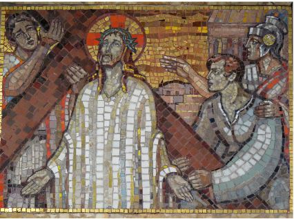 Vème station: Simon de Cyrène aide Jésus à porter sa croix